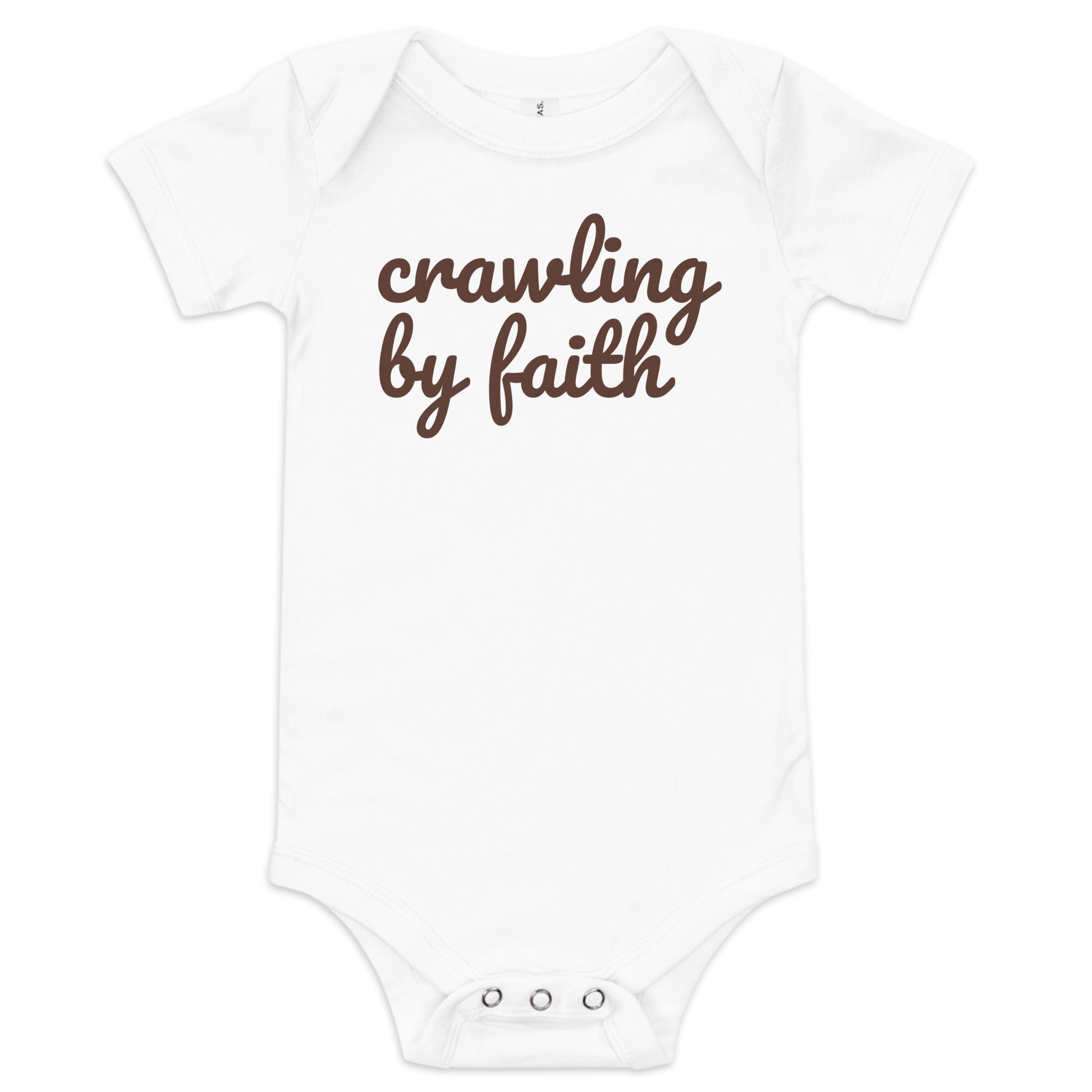 "Crawling by Faith" Graphic Baby Bodysuit - Rice/White