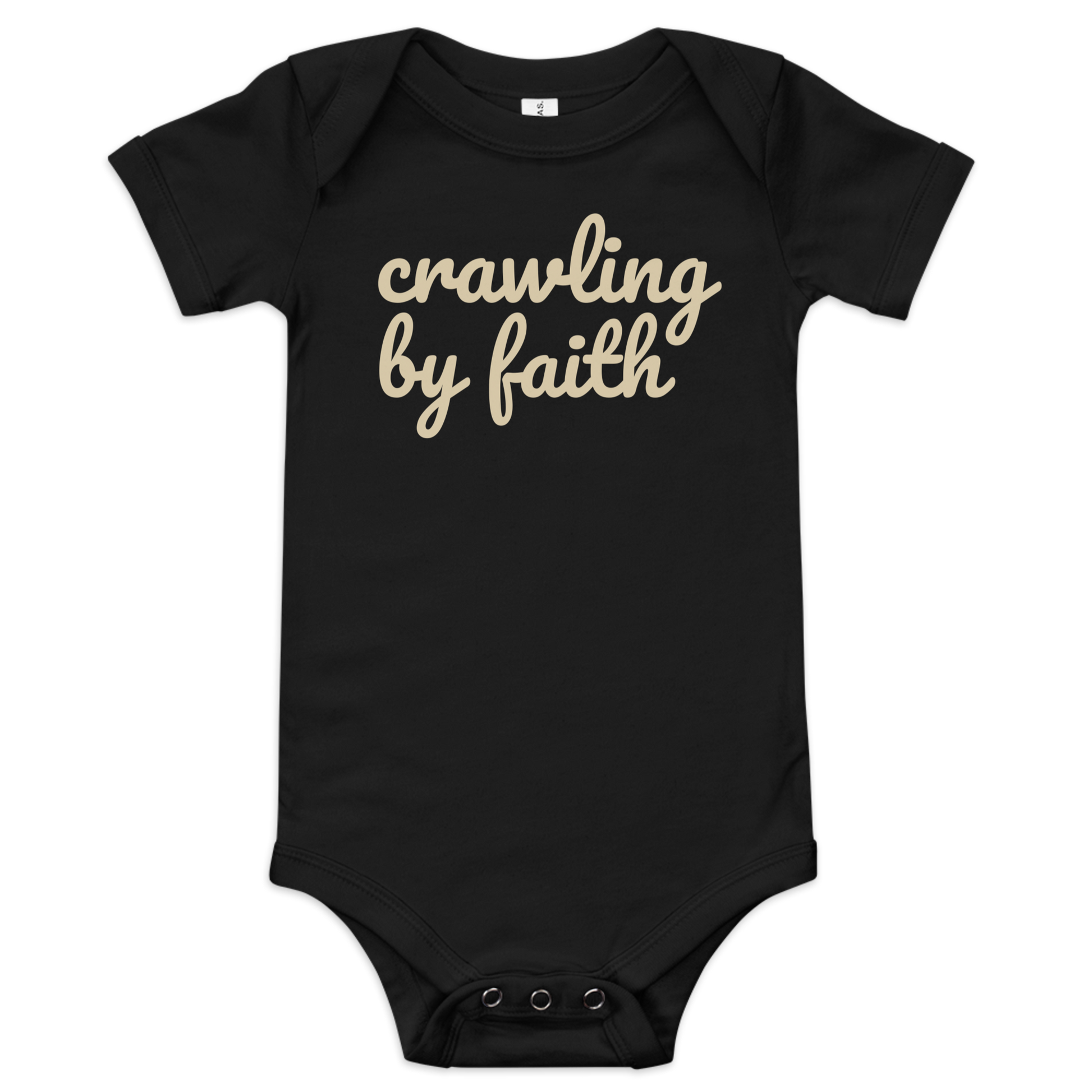 "Crawling by Faith" Graphic Baby Bodysuit | Ebony/Black