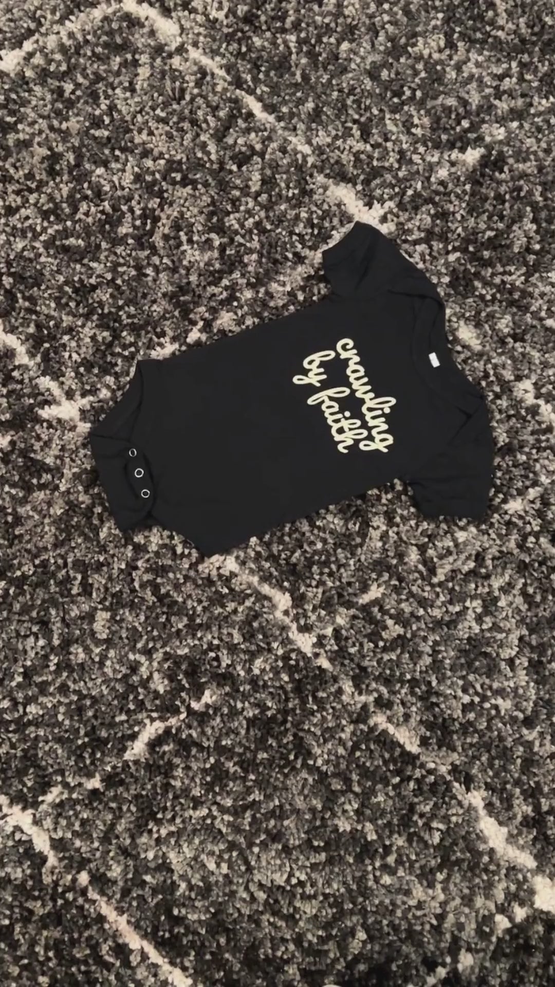 Crafted with care and adorned with the powerful affirmation "Crawling by Faith," inspired by the timeless wisdom of II Corinthians 5:7, this statement piece is designed to inspire strength and resilience from day one. Elevate your baby's wardrobe with this meaningful statement piece.