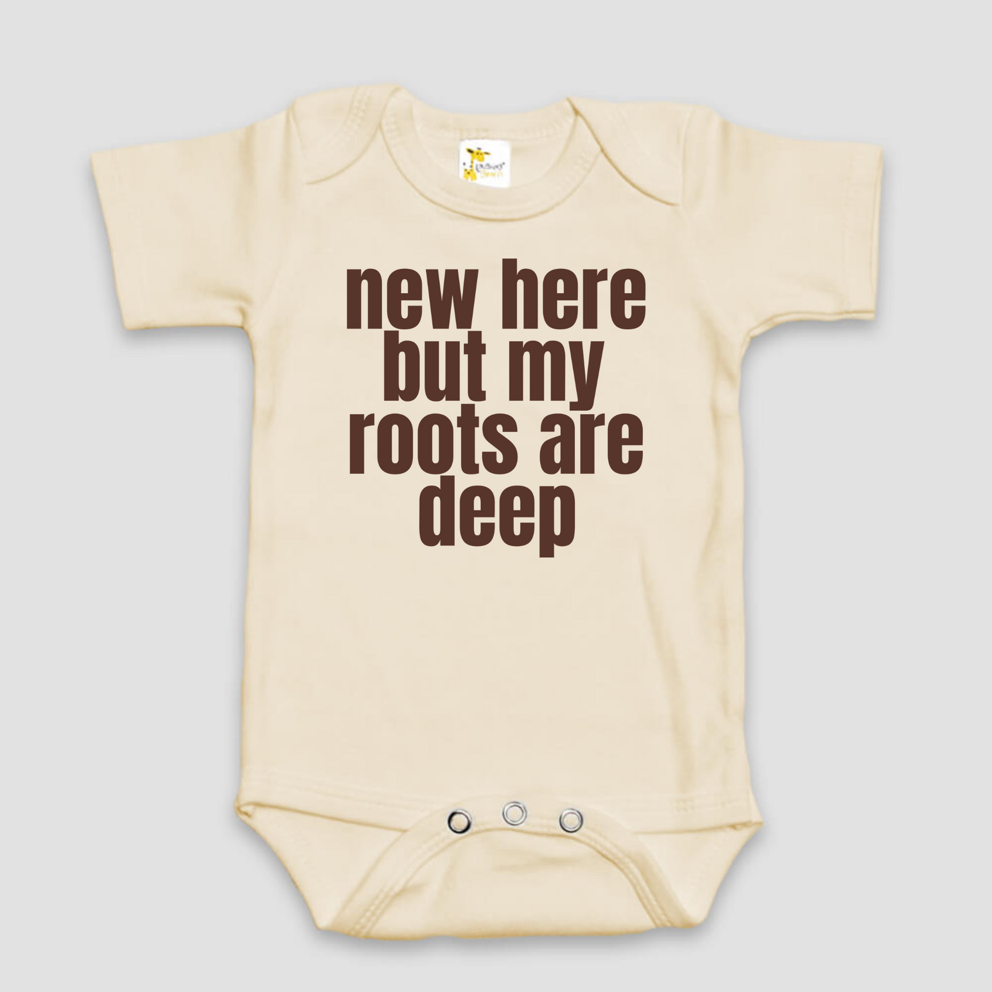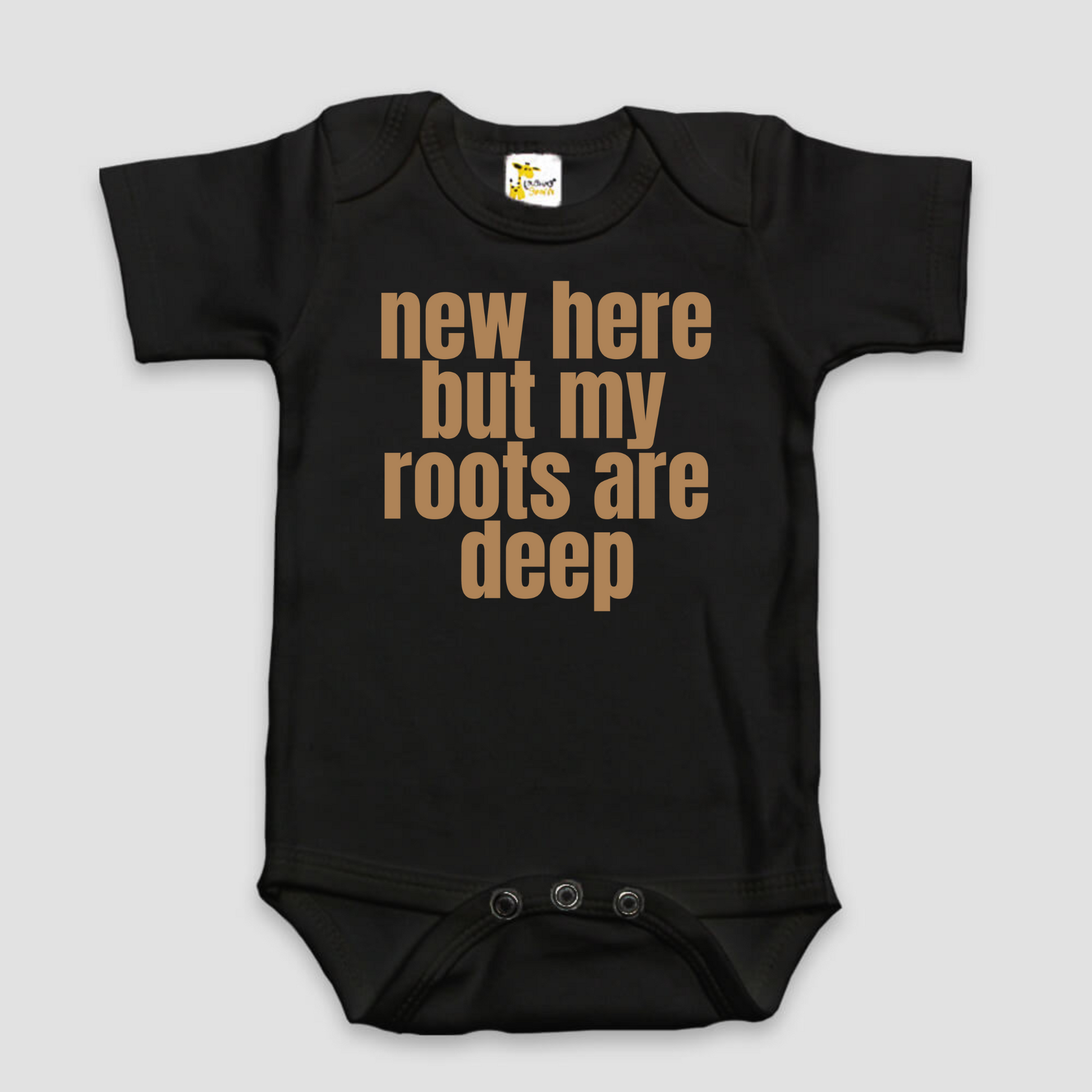 "New Here But My Roots Are Deep" Graphic Baby Bodysuit | Multiple Colors