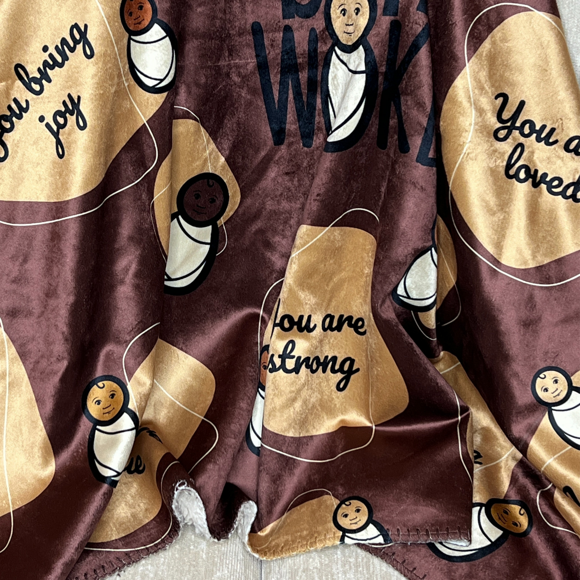 Born WOKE Affirmation Sherpa Blanket 37" x 57" (Chocolate)